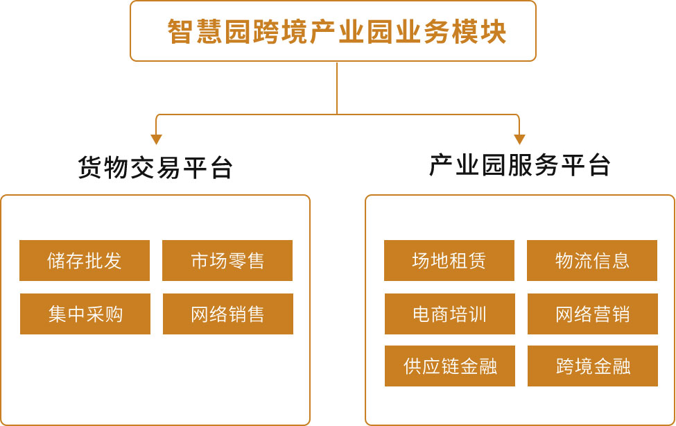 自主研发的跨境电子商务平台、跨境支付结算系统、跨境仓储物流监控系统整合应用,通过数字化系统,实现产业园针对跨境交易链条中的各个环节进行管理,实现集约货源、集约平台、集约销售、集约仓储、集约物流五大运营管理模式。