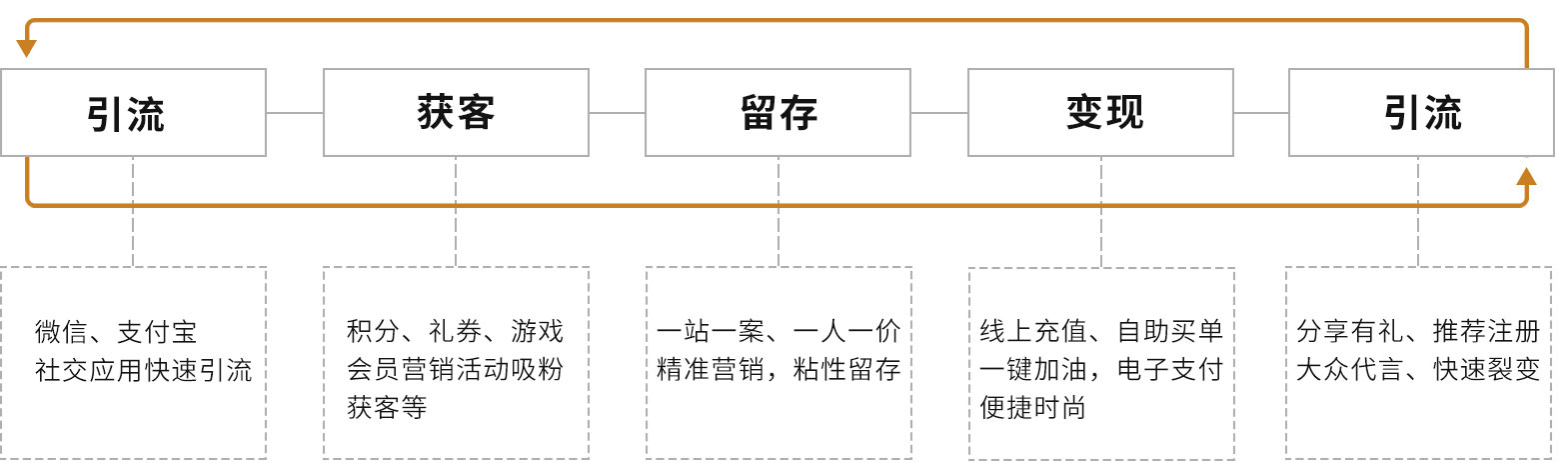 (线上线下分享、推荐、传播、注册、充值消费全环节营销)